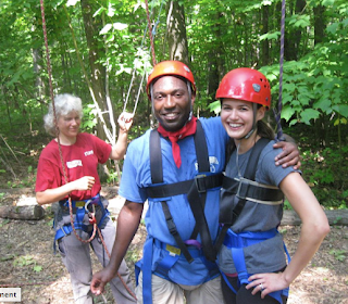 - Oh Lindsay! What can I say about her? She's full of life and is always smiling! Her and I bonded during a High Ropes course for one of our leadership classes. We were, oh I dunno, 30 feet up in the air, facing one another each one a tight rope. We had to hold hands and begin to walk "out" from one tree, towards two other trees. But since we were on different tightropes, we kept getting further and further apart. The hardest part was the beginning because you're so close to the person that you can't really balance yourself. I will admit that I was quite "scared" lmao. But she kept me calm, and then as we went out further it got easier. Here's a picture of us when we got down!